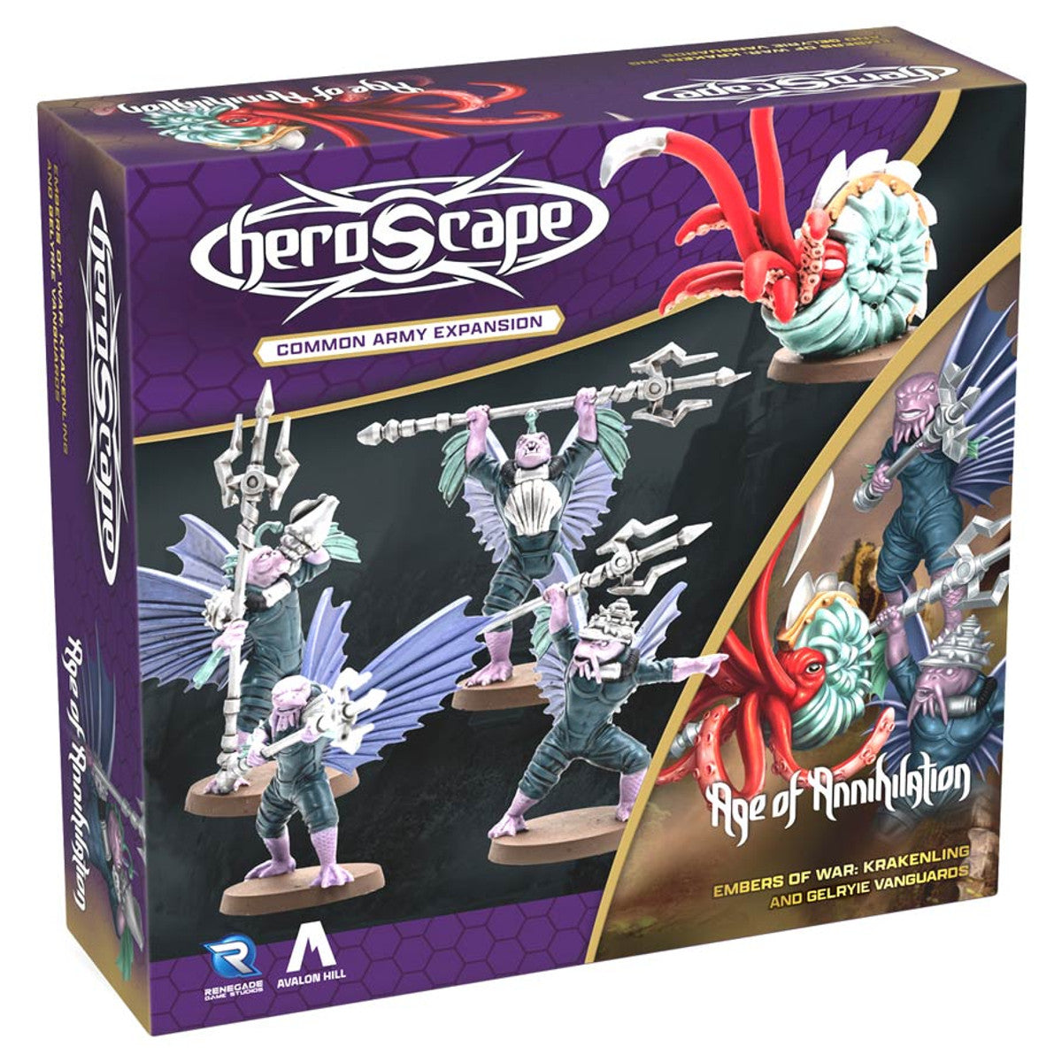 This common army expansion contains one 4-figure common squad and one common hero players can use to customize their armies! The Gelryie Vanguards rise with the tide and can surge forward and strike without warning with Tidal Advance. The Krakenling can teleport across the battlefield, swap places with enemies, and unleash multiple attacks upon your foes. Unleash these aquatic forces upon your enemies!
